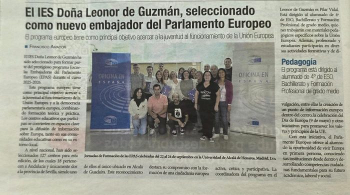 El IES Doña Leonor de Guzmán de Alcalá de Guadaíra ha sido seleccionado para formar parte del prestigioso programa Escuelas Embajadoras del Parlamento Europeo (EPAS) durante el curso 2025-2026.