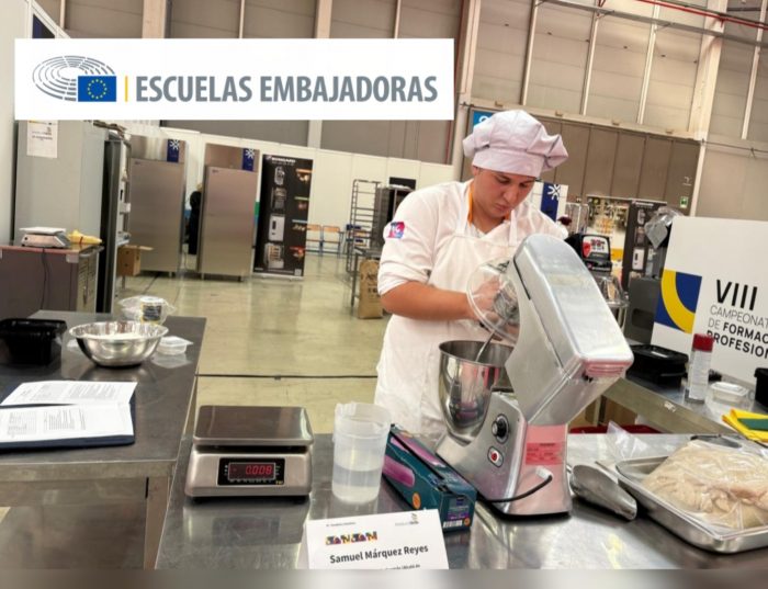El alumno Samuel Márquez Reyes, de 2º de Panadería, Repostería y Confitería, acompañado por su tutora Ore Ramos, participa en el certamen Andalucía Skills, representando a nuestro centro y a la Formación Profesional que impulsamos como Escuela Embajadora. Su elaboración de distintos productos artesanales —entre ellos el tradicional pan de Alcalá— refleja los valores que promovemos: excelencia, esfuerzo, compromiso, trabajo en equipo y orgullo por la formación práctica y de calidad que ofrecemos a nuestro alumnado.